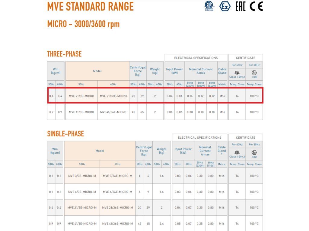 MVE 21/3E-MICRO 400V 0,04kW vibračný elektromotor